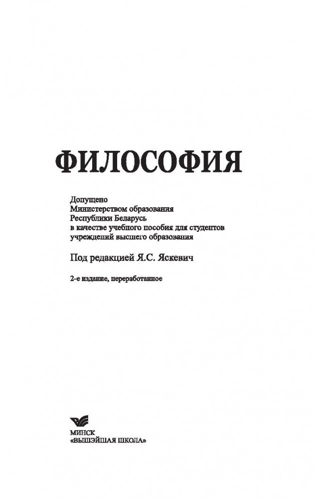 Рассматриваются вопросы сущности, статуса и функций философии, ее генезиса и исторической эволюции, анализируются основные проблемы метафизики, онтологии, философии природы, философской антропологии, теории познания, философии науки, социальной философии.