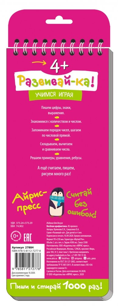 Многоразовые прописи на пружинке. Весёлая арифметика. Пишем цифры и считаем (с фломастером)