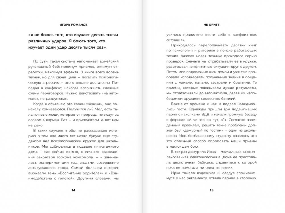 Выходить победителем из любой перепалки. Гасить конфликт парой фраз. Доброжелательно отстаивать свои границы и превращать врагов в хороших приятелей. Этому учит книга, написанная врачом-психиатром, психологом с тридцатилетним стажем, деканом факультета коммуникативного менеджмента РГСУ, бизнес-тренером Игорем Романовым. Он предлагает 8 проверенных техник, которые помогут свести на нет психологическую агрессию и дать возможность перейти к конструктивным переговорам.