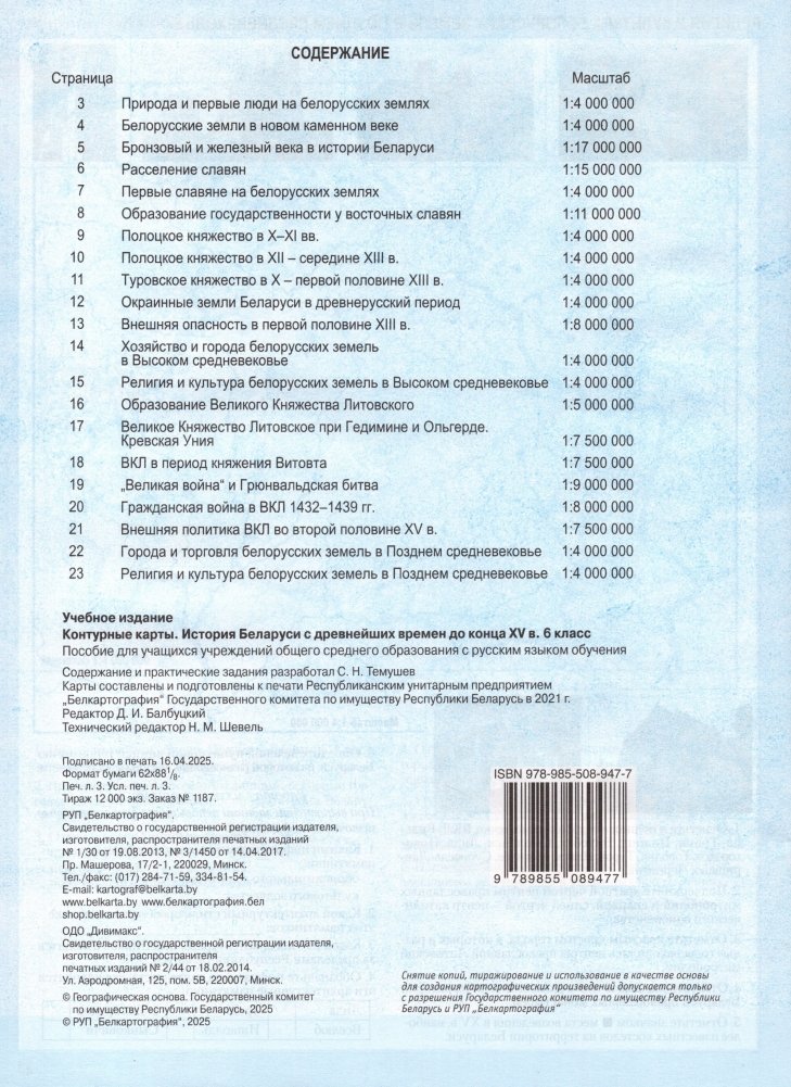 Контурные карты. История Беларуси с древнейших времен до конца XV в. 6 класс