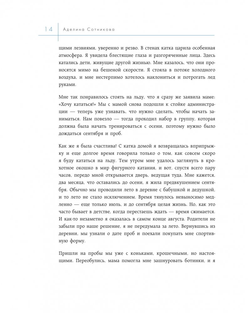Вдохновляющая история Аделины Сотниковой, первой в российской истории олимпийской чемпионки в женском одиночном катании. В книге вы найдете практические советы, которые помогут вам усовершенствовать свои навыки в фигурном катании, QR-коды с видеоматериалами о том, как выполнять каждый элемент, профессиональные лайфхаки, которые ускорят ваш путь к успеху. С этой книгой вы погрузитесь в мир фигурного катания и полюбите его навсегда!