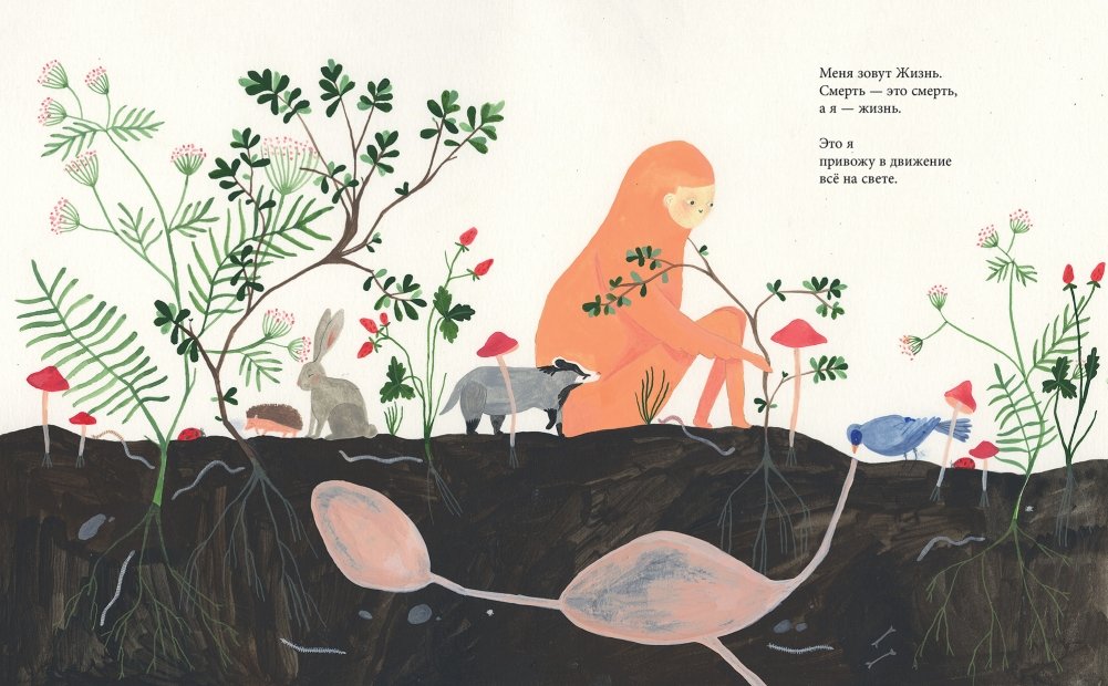 В этой книге мы знакомимся с Жизнью, принимающей форму доброго и внимательного существа. Больше всего она любит дарить надежду и придавать людям сил. Это произведение — гимн жизни и планете, на которой мы живём. Через иллюстрации и текст авторы повествуют о самых разных аспектах бытия: взаимодействии с окружающим миром, людьми, животными и природой.