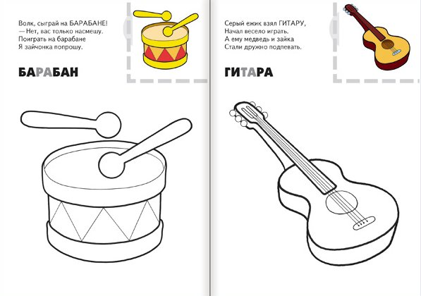 Назови, раскрась, наклей: Музыкальные инструменты