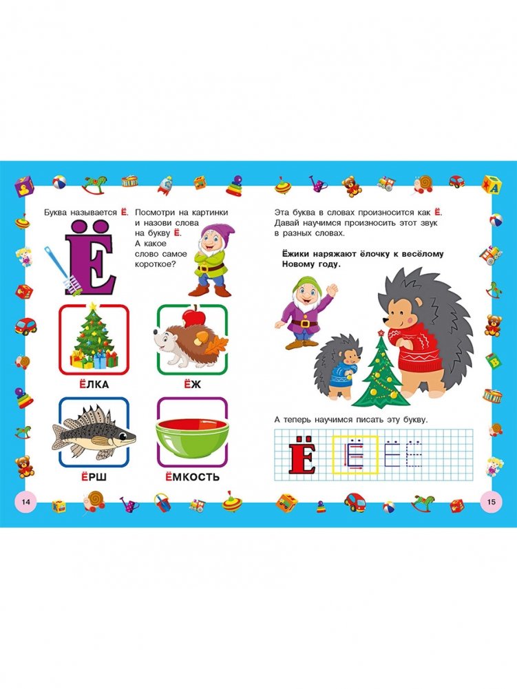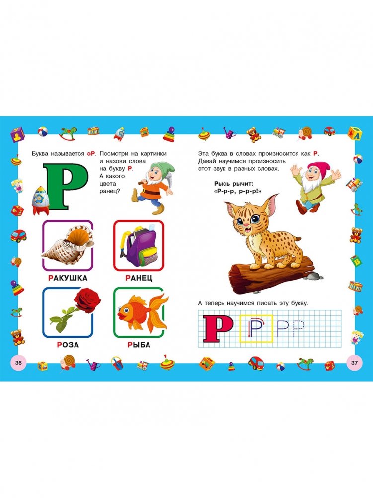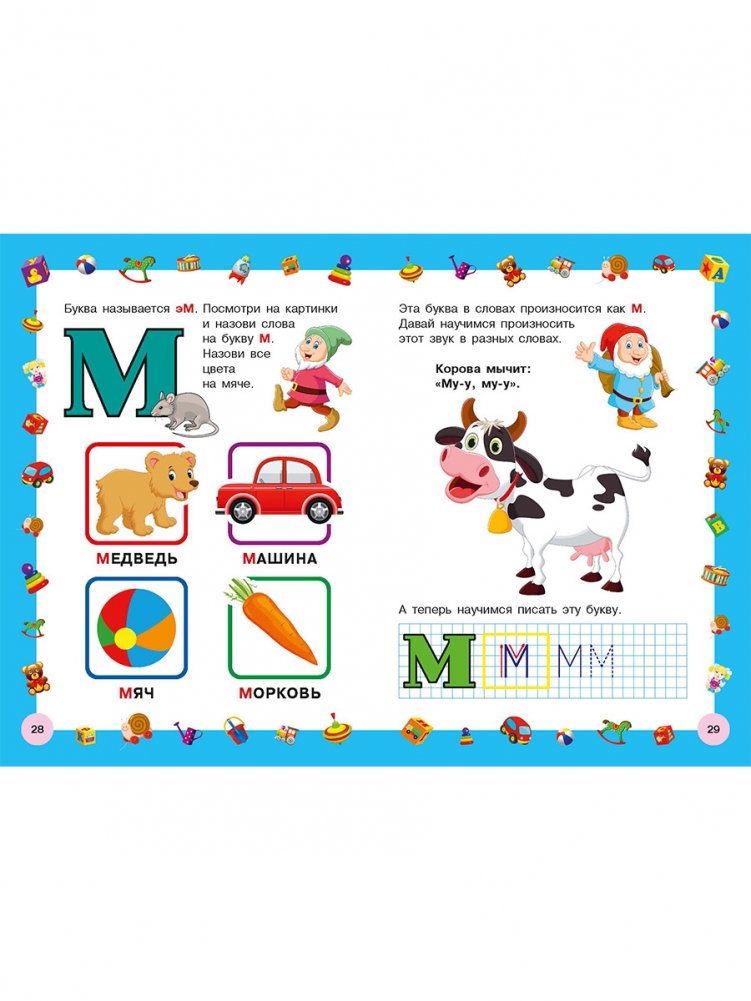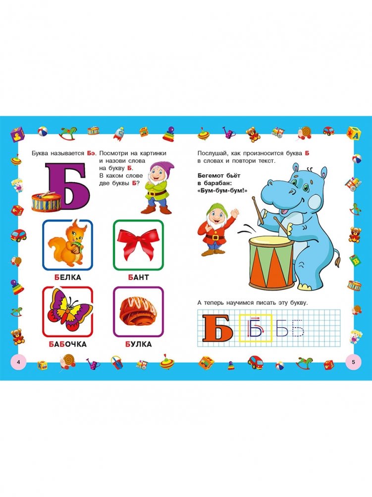 Специально для вашего малыша мы сделали Азбуку с яркими крупными буквами, чтобы ребёнку было легче запомнить русский алфавит. В книге представлены заглавные буквы, рассказывается, как они правильно называются и даны зрительные и слуховые упражнения для лучшего запоминания букв. Также есть небольшие прописи для каждой буквы. Написание букв развивает мелкую моторику, способствует лучшему запоминанию алфавита.