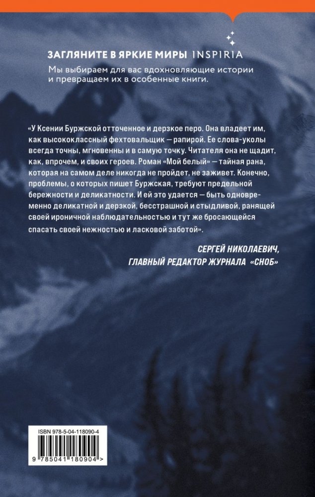 Если смешать все оттенки видимой части цветового спектра, то получится белый. Цвет снега. Цвет рамочки полароида. Цвет флага, который выбрасывают, если сдаются, потому что больше нет сил выдерживать боль или любовь, нет сил надеяться. Старшеклассница Женя связывает с белым цветом самые драгоценные моменты своей жизни – когда ее мамы были вместе, и в их общий дом еще не пришла измена; когда на белоснежных листах бумаги она писала новые и новые письма музыканту Лене, чувства к которому захватили все ее существо. Человеческая близость, человеческое счастье – есть ли что-то более хрупкое? Даже первый снег, кажется, лежит на земле дольше. У книги Ксении Буржской есть волшебное свойство – после ее прочтения начинаешь острее чувствовать кожей прохладные потоки счастья и то, как они день за днем безвозвратно тают в ежедневной суете. Да, ничего нельзя вернуть или удержать, но можно вовремя нажать на кнопку "внутреннего полароида".
