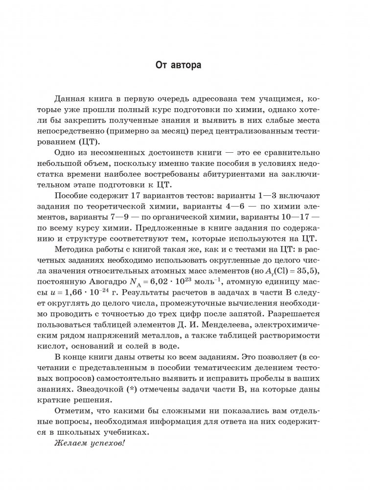 Книга в первую очередь адресована тем учащимся, которые уже прошли полный курс подготовки к вступительным испытаниям по химии, однако хотели бы закрепить полученные знания и выявить в них слабые места непосредственно перед ЦТ.