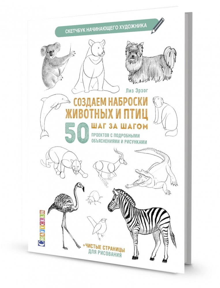Серия «Скетчбук начинающего художника» от известного иллюстратора Лиз Эрзог воплотила в себе все достоинства современных учебников по рисованию: простоту, наглядность, возможность начать практиковаться прямо на страницах пособия, а также, что немаловажно, компактность и бюджетность.