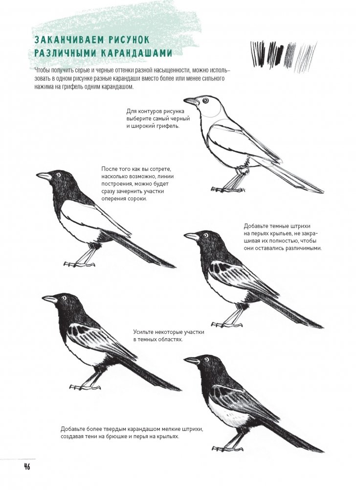 Благодаря тому, что все уроки разбиты на 2–5 простых этапов, вы легко выделите главные моменты. В мастер-классах показаны разные техники завершения рисунка, что позволит придать вашему изображению объем и характер.