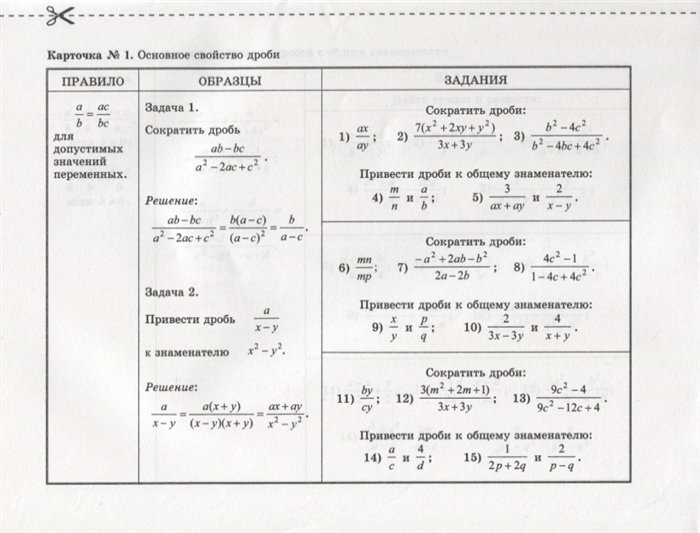 Вашему вниманию предлагается система карточек для коррекции знаний по курсу алгебры 8-9 классов.