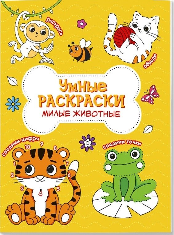 Серия «Умные раскраски» –интересное и полезное занятие для ребенка. Каждый разворот тренирует новый навык: «соедини по цифрам» поможет изучить счёт, «дорисуй по точкам и пунктирам» подготовит руку к письму, а раскрашивание по цветным подсказкам сформирует восприятие цвета у маленького художника! За таким творческим занятием время пролетит увлекательно и незаметно! Раскраска "Милые животные" познакомит ребенка с удивительным животным миром!