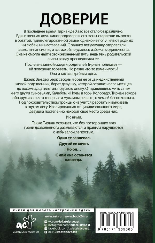 Джейк Ван дер Берг, сводный брат ее отца и единственный живой родственник, берет девушку, которой осталась пара месяцев до восемнадцатилетия, под свою опеку. Отправившись жить с ним и его двумя сыновьями, Калебом и Ноем, в горы Колорадо, Тирнан вскоре обнаруживает, что теперь эти мужчины решают, о чем ей беспокоиться. Под их покровительством она учится работать, выживать в глухом лесу и постепенно находит свое место среди них.