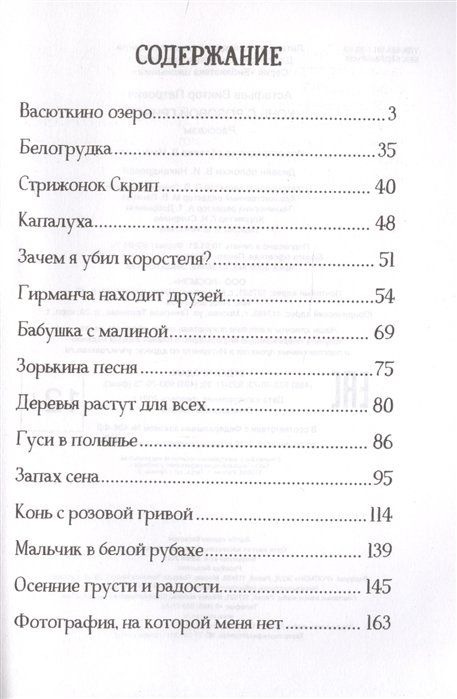 В сборник вошли рассказы В.П. Астафьева «Васюткино озеро», «Белогрудка», «Капалуха», «Зорькина песня», «Гуси в полынье», «Конь с розовой гривой», «Фотография, на которой меня нет» и другие. Читателю предстоит погрузиться в полную трудностей повседневную жизнь послевоенной сибирской деревни, увидеть ее глазами ребенка главного героя этих рассказов.