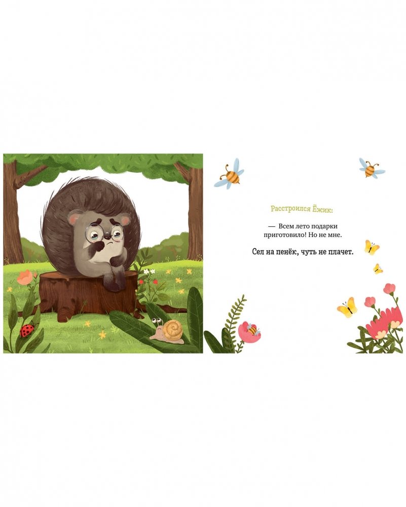 Ежик-метеоролог — очаровательный малыш, который знакомится с окружающим миром. Одним солнечным утром он узнаёт, что наступило лето и приготовило для всех подарки: для птичек, рыбок и даже для мишки-топтыжки. А про Ежика, кажется, забыло. Неужели наш герой останется без подарка? Невероятно трогательная история от непревзойденного мастера сказок Елены Ульевой подарит вам тепло, уют и незабываемое время с малышом.