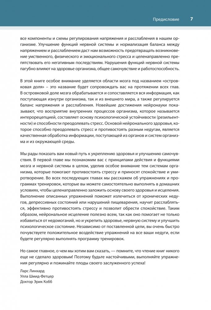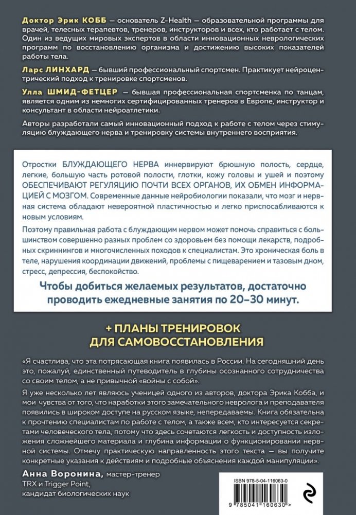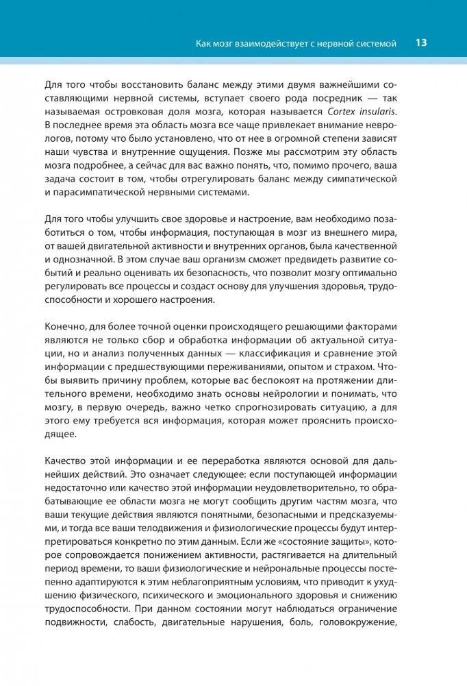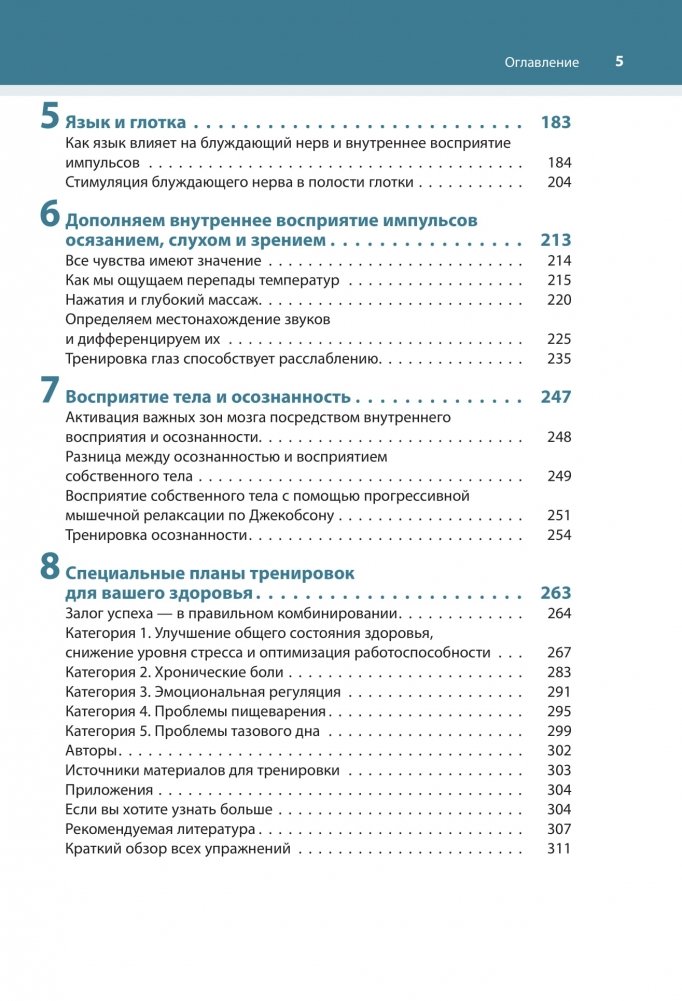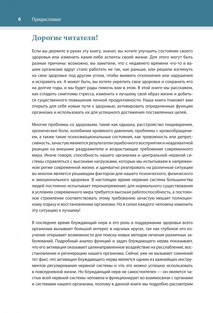 Посредством целенаправленной тренировки блуждающего нерва и внутреннего восприятия вы можете легко и эффективно самостоятельно лечить депрессию, беспокойство, проблемы с пищеварением, а также боль, двигательные расстройства и симптомы стресса. Основываясь на последних исследованиях, авторы предлагают более 100 упражнений, с помощью которых вы можете улучшить свое физическое, психическое и эмоциональное здоровье.