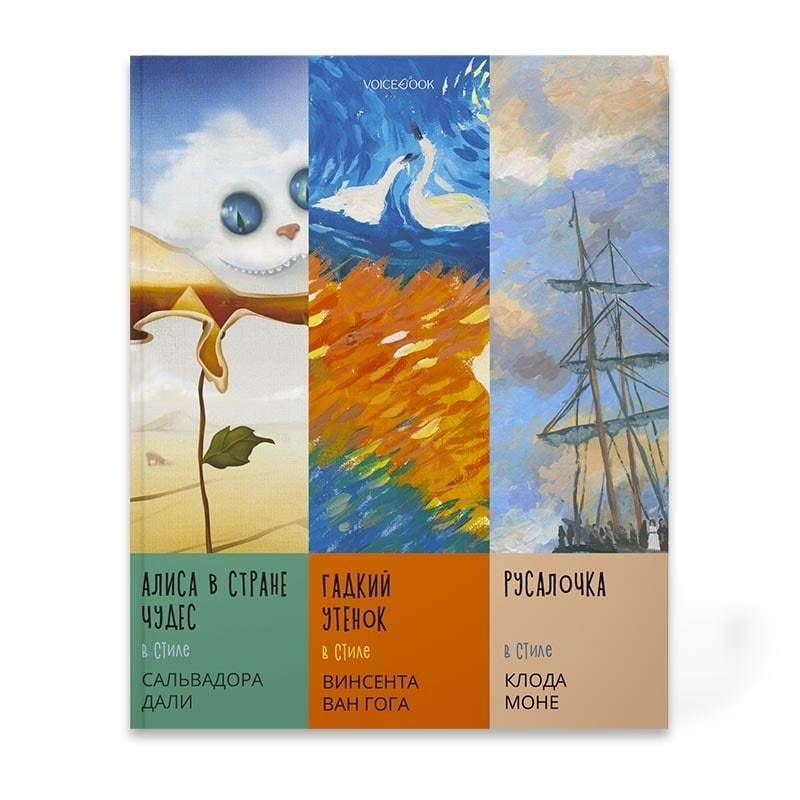 В альбом входят переложения любимых сказок – «Алиса в стране чудес», выполненная в манере Сальвадора Дали, «Гадкий утенок» в стиле Винсента Ван Гога и «Русалочка», в иллюстрациях к которой творчески переработаны работы Клода Моне.