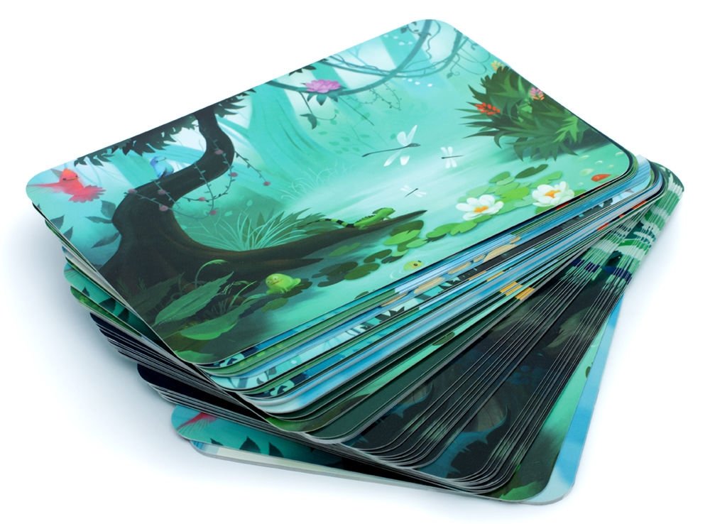 В комплект игры входит 50 двухсторонних карточек с четырьмя видами иллюстраций (волшебный замок/бродячий цирк, лесное озеро/охота на дракона) и правила игры на русском языке.