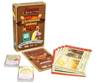 "Время приключений. Карточные войны" — самая эпичная настольная игра, какую можно найти в землях Ууу... да и не только там! Настольное сражение развернётся на песчаных землях и бесполезных болотах. Натрави песчаных акул на болотных русалок, столкни на поле боя пляжную мумию и ундинку-блондинку, а потом флюпни Доктора Смерть, чтоб сопернику было неповадно!