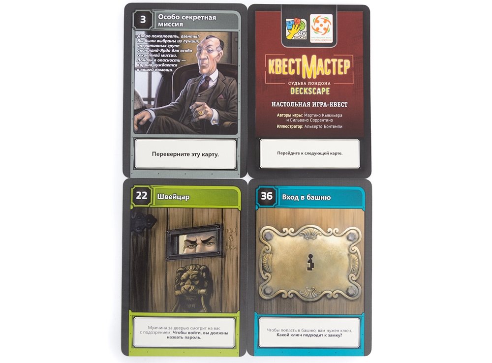Компоненты настольной игры КвестМастер: Судьба Лондон: 60 больших карт.