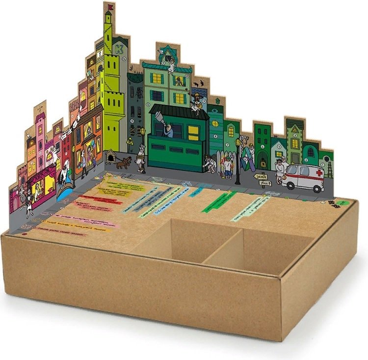 Состав игры: вертикальное поле с двумя путями к вершине, 105!!! разных эмоций, неповторимые фишки героев. Наши фишки игроков способны устоять даже на корабле во время качки, когда стол заденет кто-то из гостей и волной игру смоет в море. Ведь они — деревянные прищепки.