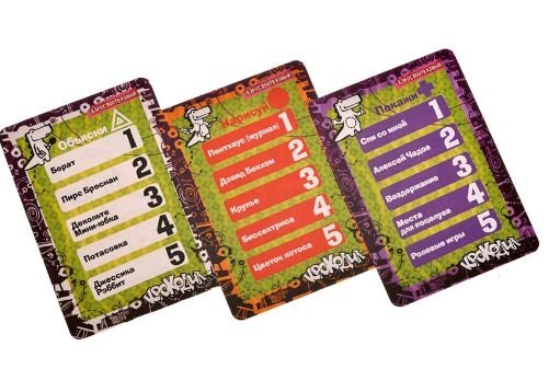 Наконец-то смешных, слишком взрослых, жутковатых и угарных слов набралось на целый выпуск карточного Крокодила. Некоторые из них смешные даже не сами по себе, а тем, как их показывают в режиме пантомимы. Большой куш, например, смутил не одну девушку, а некоторых парней прямо-таки испугал. Ладно, если объяснять его словами, а не жестами, легче всё равно не станет, но отгадают быстрее. А если рисовать, отгадают ещё быстрее, поэтому большой куш не стоит в заданиях на рисование. Тренировка мимики, жестов, риторики и искусства изображать предметы. Попробуете показать всем телом угар или нарисовать виагру? Кстати, коробочка игры такая маленькая, что можно носить её в рюкзаке или сумке постоянно, а в самый скучный момент вечеринки коварно доставать её ловким жестом. Таймер обычно используют на смартфоне, а рисовать можно и на салфетке (некоторые делают это с помощью планшета - очень экологично). 405 заданий - это на кучу оригинальных партий.