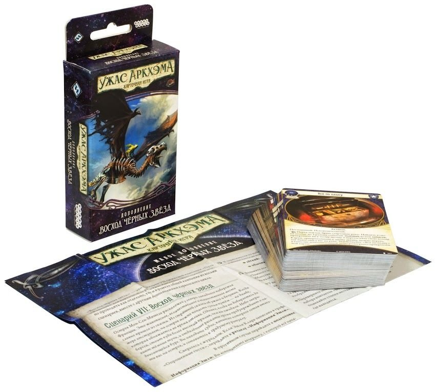 "Восход чёрных звёзд" – седьмой сценарий сюжетной кампании "Путь в Каркозу", в котором сыщики окажутся на самом краю безумия, застигнутые бурей у стен древнего аббатства на острове Мон-Сен-Мишель. Это малое дополнение состоит из 60 карт. Сюда входят новые карты игроков для развития и улучшения ваших колод и новый сценарий, который можно пройти как в одиночном режиме, так и в рамках кампании "Путь в Каркозу". Набор содержит карты 263–303 кампании "Путь в Каркозу" и лист сценария.