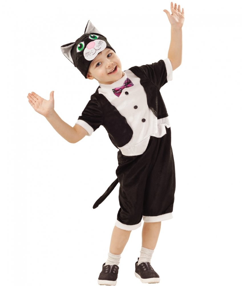 Карнавальный костюм для настоящих джентльменов! В костюме Кот Алекс любой мальчик будет самым ярким и милым на любом празднике. Оригинальный костюм для мальчика 3-5 лет представлен в черно-белом цвете. Ребенку обязательно понравится этот образ, и костюмированный праздник пройдет в хорошем и веселом настроении. Костюм представляет собой комбинезон и шапку в едином стиле.