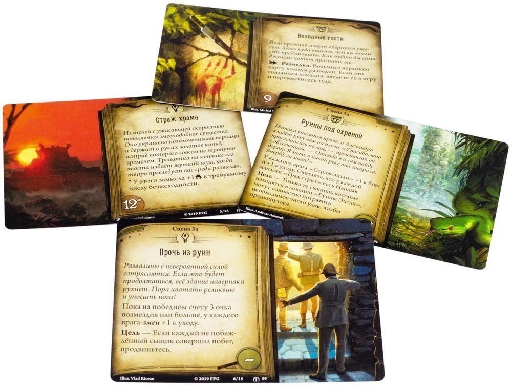 В "Забытой эпохе" сыщики отправляются исследовать загадочный город. Экспедиция заведёт их в самое сердце диких джунглей и в глубины запретных пещер. Переживут ли они полное опасностей приключение или встретят в нём свою погибель? В этой коробке вы найдёте два первых сценария сюжетной кампании "Забытая эпоха", а также новых сыщиков и новые карты, которые позволят вам ещё сильнее разнообразить свои колоды.