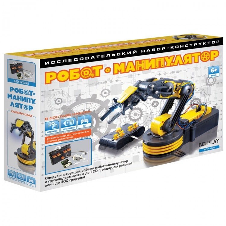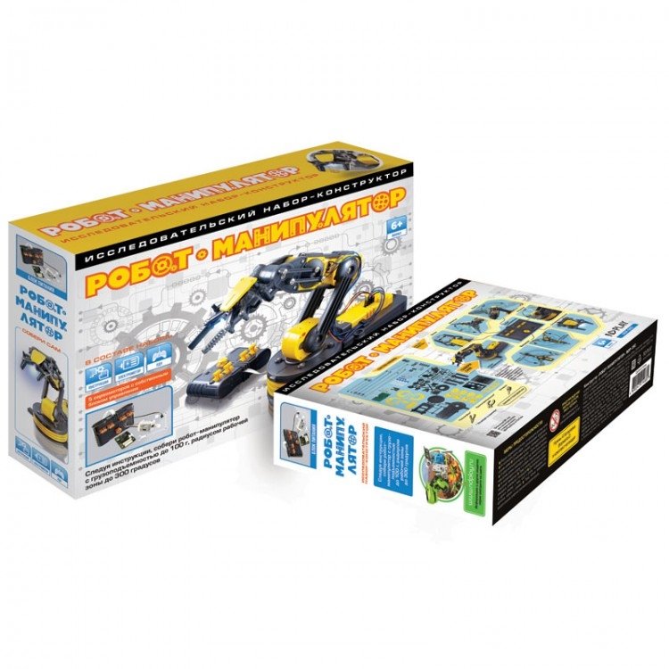 Робот-манипулятор — тип промышленных роботов. Такие роботы выполняют функции человеческой руки. Соединения сегментов манипулятора допускают вращательные и поступательные движения. Знания, умения и практический опыт, полученные в ходе сборки этой модели, будут способствовать пониманию теории манипуляторов, которая является разделом теории машин и механизмов. Следуя инструкции, вы соберете робот-манипулятор с грузоподъемностью до 100 г, радиусом рабочей зоны до 300 градусов, весом 658 г и размером 30 х 40 см (ШхВ).