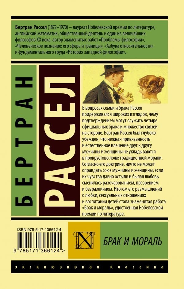 В вопросах семьи и брака Рассел придерживался широких взглядов, чему подтверждением могут служить четыре официальных брака и множество связей на стороне. Бертран Рассел был глубоко убежден, что нежная привязанность и естественное влечение друг к другу мужчины и женщины не укладываются в прокрустово ложе традиционной морали. Согласно его доктрине, ничто не может оправдать союз мужчины и женщины, если их чувства давно остыли, и былая любовь сменилась разочарованием, презрением и безразличием. Итогом его размышлений о любви, сексуальных отношениях и воспитании детей стала знаменитая работа "Брак и мораль", удостоенная Нобелевской премии по литературе.