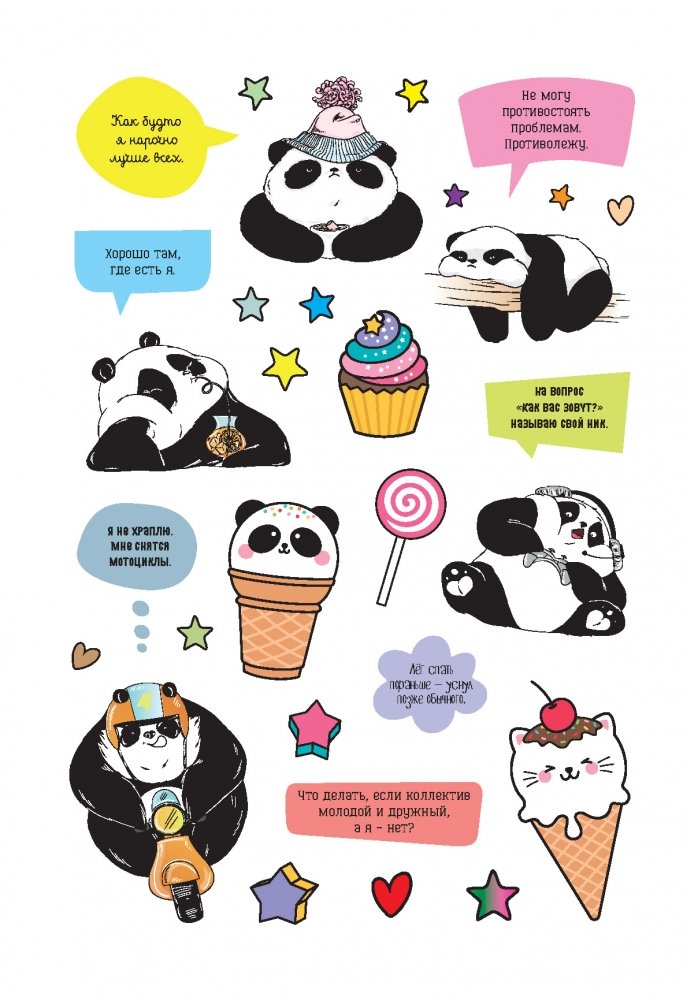 Вас ждет более 450 ярких наклеек с изображениями харизматичного Пандыча, его любимыми лакомствами и фразами, в которых каждый узнает себя или друзей.