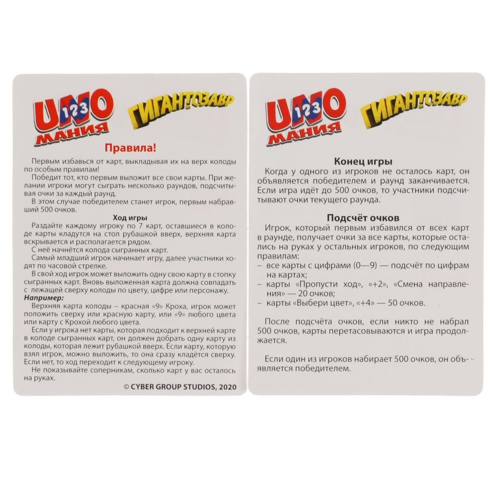 Карточная игра "УНОмания. Гигантозавр" (72 карточки)