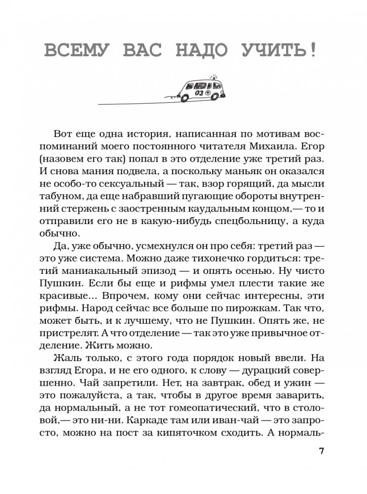 Это книга рассказов из психиатрической практики. Настоящих, без купюр и врачебного канцелярита. Можете не волноваться о сохранности врачебной тайны: в приведенных ниже историях изменены имена и ряд деталей, поэтому они никого не выдадут. Зато приоткроют завесу тайны, которой укрыта наша профессия. Вот увидите: к концу повествования психиатрия станет вам ближе и роднее.