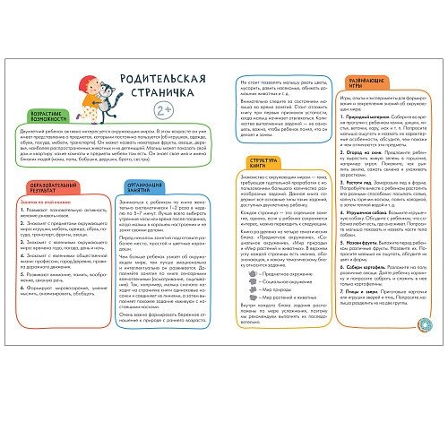 Книга «Окружающий мир 2+» из серии «Школа Семи Гномов. Активити с наклейками» предназначена для расширения кругозора и знаний об окружающем мире детей от 2 до 3 лет.