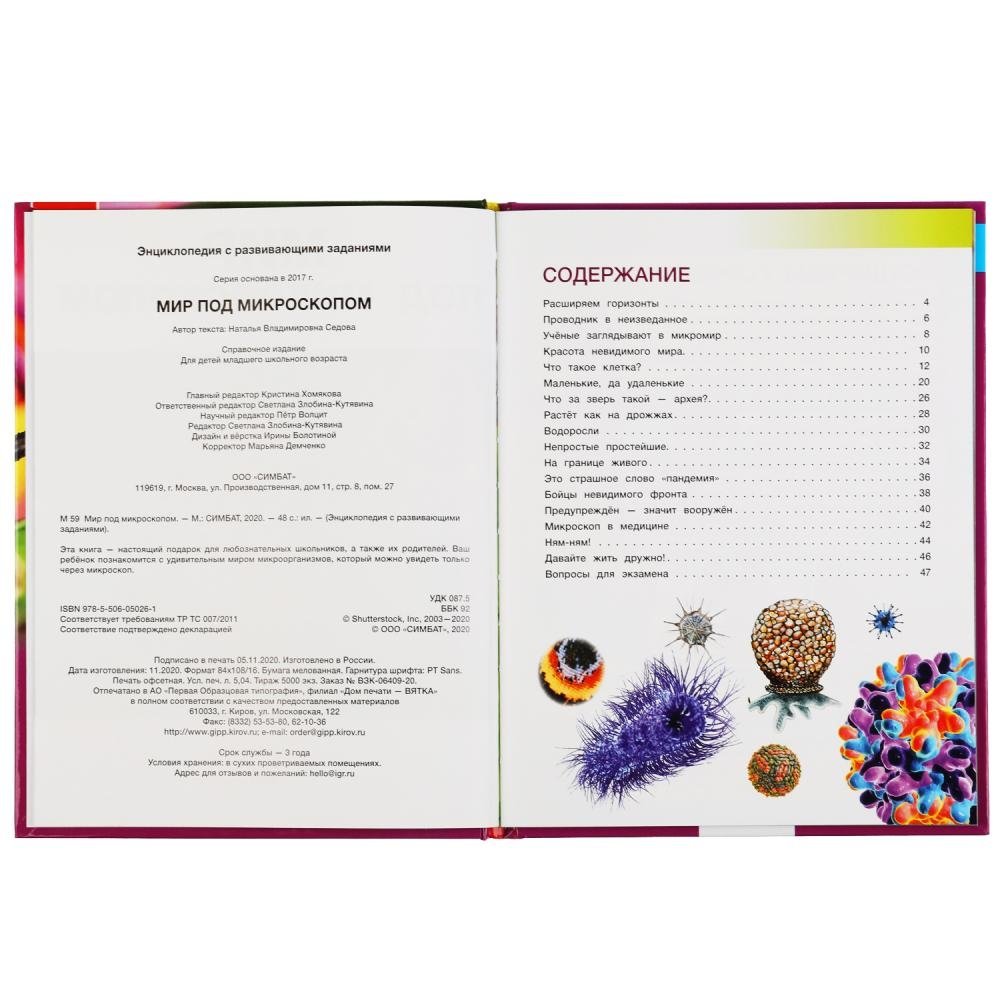 Эта занимательная энциклопедия погрузит юного читателя в удивительный мир, познакомиться с которым можно только под многократным увеличением в микроскопе. Яркие фотографии и удивительные факты увлекут ребёнка и помогут ему быстро, эффективно и с удовольствием усвоить новую информацию.