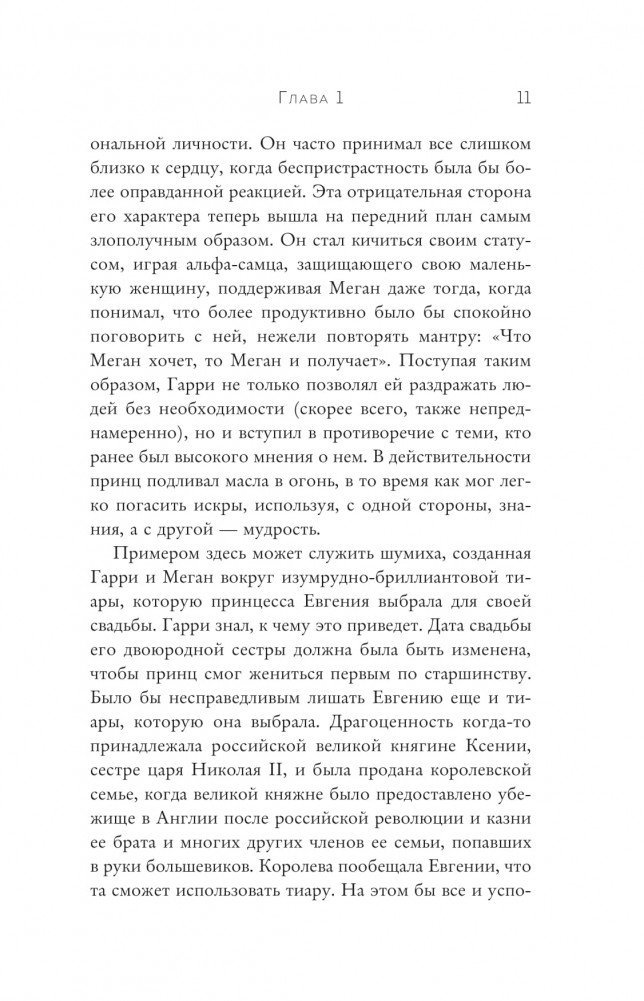 Автор книги предсказала все, что происходит с парой, начиная с интервью Опре Уинфри до перечисления компаний, с которыми пара сотрудничает сейчас. Благодаря связям в королевском дворе и знакомствам за океаном, автор детально разбирает скрытые мотивы пары и отвечает на вопросы: смогут ли они сделать большое состояние, откажется ли Меган от своих амбиций — опередить Диану и стать самой известной женщиной в мире, или даже президентом США?