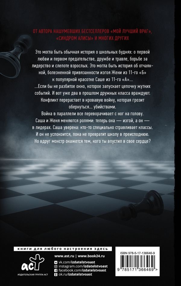 Война в параллели все переворачивает с ног на голову. Саша и Женя меняются ролями: теперь она — изгой, а он — в лидерах. Саша уверена: кто-то специально стравливает классы. И он не успокоится, пока не превратит школу в преисподнюю. Но вдруг монстр окажется тем, кого ты впустил в свое сердце?