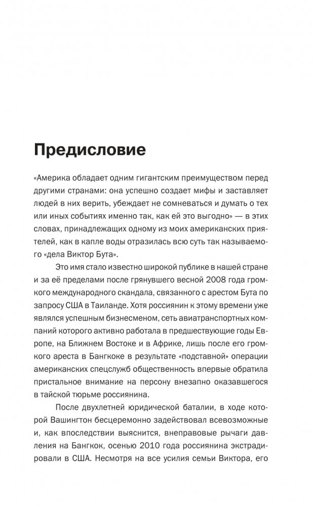 Вновь проанализированные факты истинных причин охоты США за В. Бутом, интервью с ним, его родственниками и знакомыми, уникальные фотографии из семейного архива, письма Виктора из тюрьмы и фрагменты дневников его жены Аллы легли в основу журналистского расследования этого резонансного дела, ставшего крупным международным скандалом.