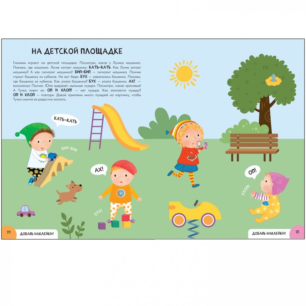 Вместе с гномиком Тучкой малыш проработает ключевые навыки, решая разнообразные речевые задачки. Задания расположены по мере усложнения, что делает процесс обучения еще более полезным и доступным для ребенка. А яркие многоразовые наклейки на прочной пленке в этой книжке не дадут малышу потерять интерес к занятиям.