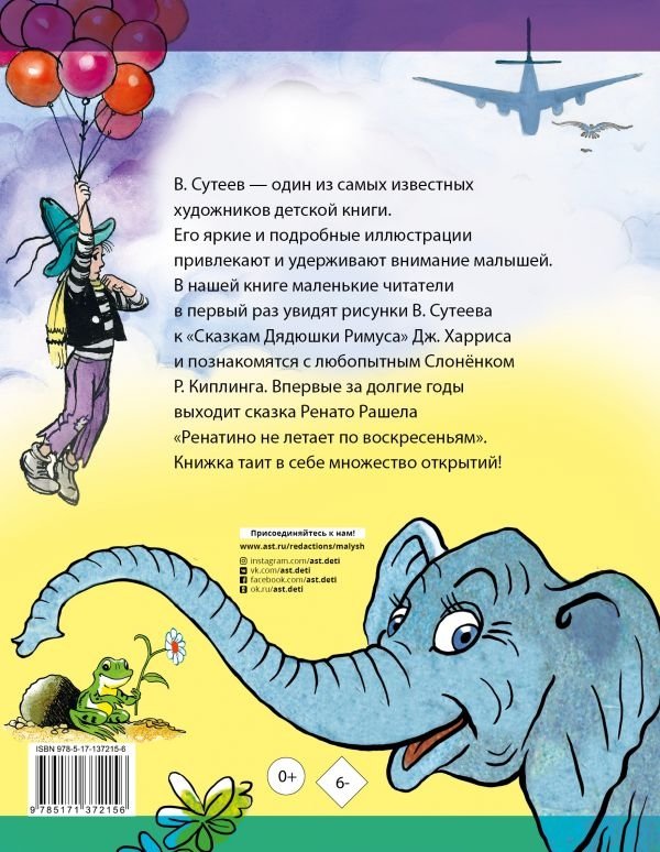 В нашей книжке действительно собраны сказки со всего света. История из джунглей от Редьярда Киплинга, африканские сказки Джоэля Харриса, итальянская сказка о летающем Ренатино Ренато Рашела, храбрый Крошка Енот американской писательницы Лилиан Муур, отчаянный Козлёнок-счетовод норвежского писателя Алфа Прёйсна и многое другое. Объединяют сказочные истории рисунки известного художника, заслуженного деятеля искусств РСФСР Владимира Григорьевича Сутеева.