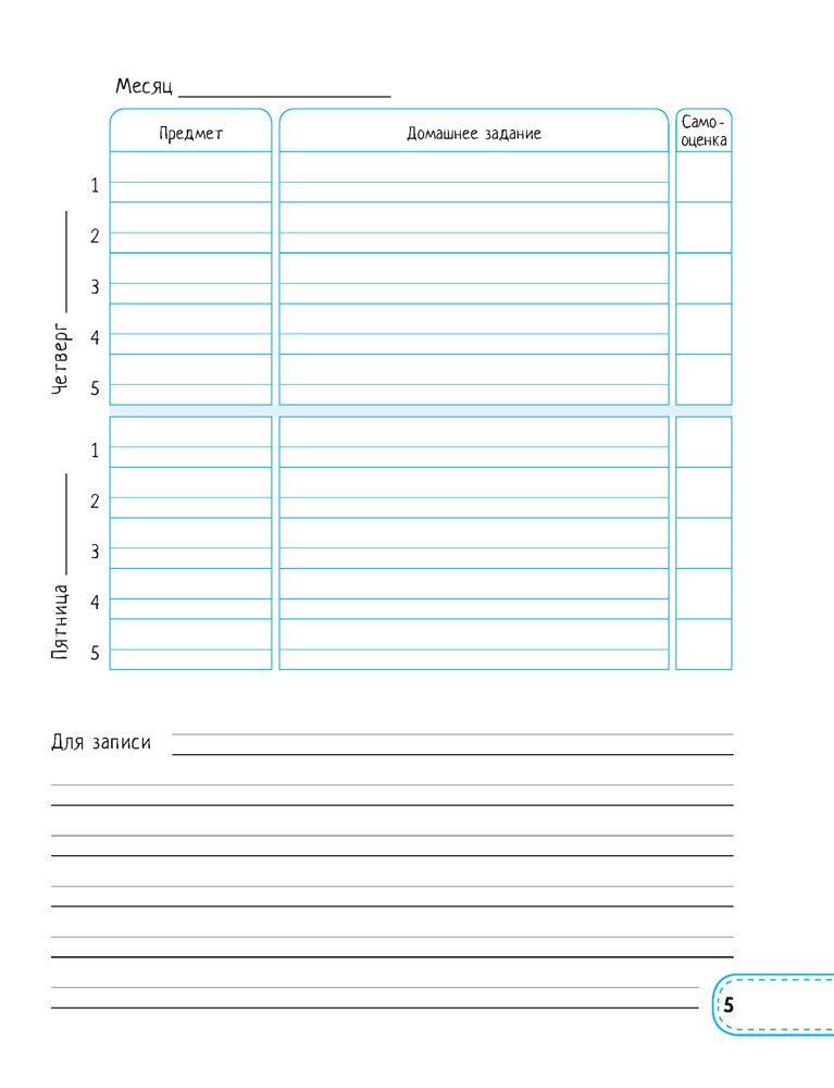 Помимо расписания уроков и домашних заданий, в «Ежедневнике» можно записать дополнительные мероприятия на каждую неделю, планы на каникулы, в отдельные разделы – замечания, благодарности, рекомендации учителя. В конце издания приводятся правила заполнения и ведения «Дневничка».