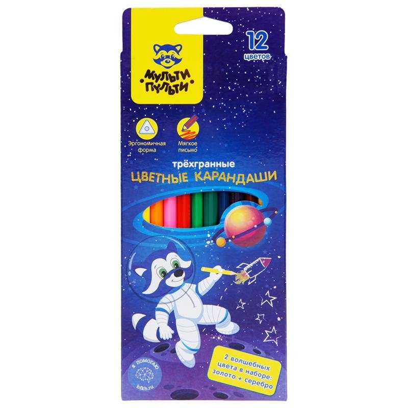 Карандаши цветные Мульти-Пульти "Енот в космосе", 12 цв., трехгран., заточен., европодвес. Арт. CP_29296