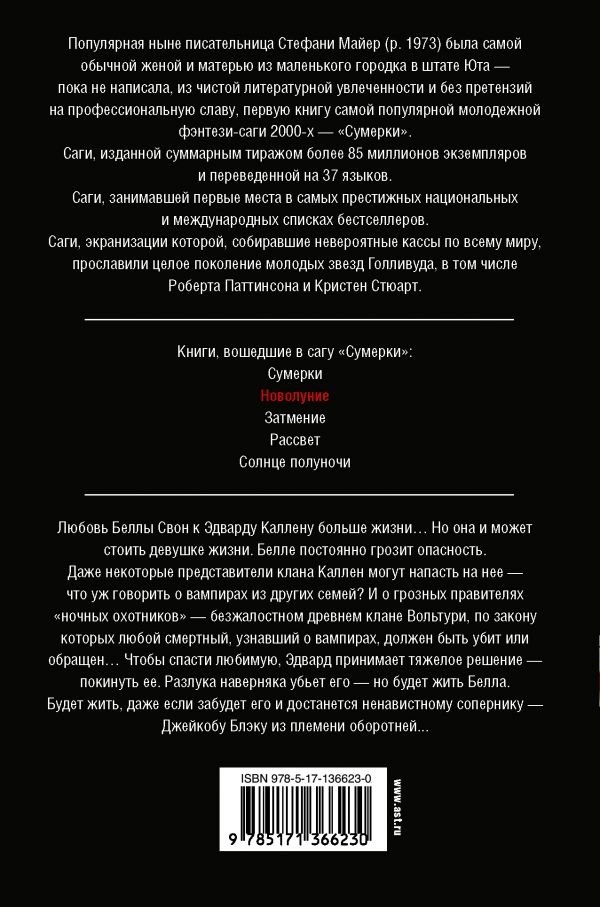 История любви старшеклассницы и вампира покорила сердца миллионов людей. Стефани Майер, создательница саги «Сумерки», два года подряд признавалась лучшей писательницей США, её книги были переведены на 38 языков, а общий тираж «Сумеречной саги» превышает 150 000 000 экземпляров. Сага легла в основу одноимённой киносерии с Робертом Паттисоном и Кристен Стюарт в главных ролях, пять фильмов цикла заработали в мировом прокате свыше 4 миллиардов долларов.