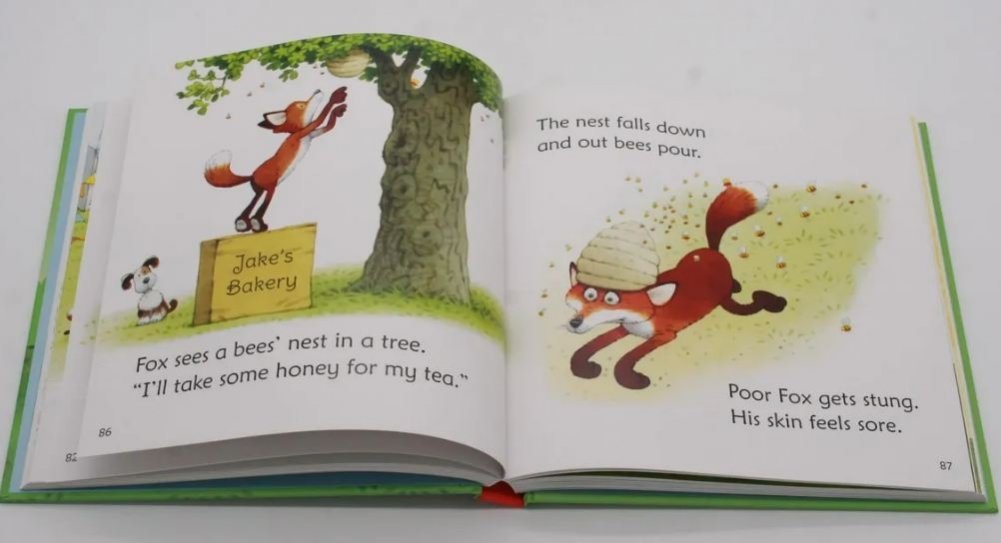 "Fat Cat on a mat", "Ted in a red bed", "Big Pig on a dig", "Hen's pens", "Fox on a box", "Frog on a log", "Ted's shed", "Sam Sheep can't sleep", "Shark in the park", "Toad makes a road", "Goose on the loose" и "Mouse moves house".