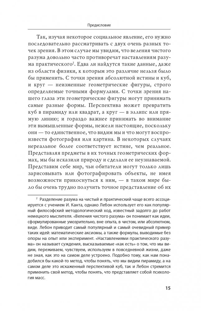 Читая книгу, легко понять, что автор явно скромничал — идейный и содержательный масштаб его труда завораживает, на ста с лишним страницах он разместил полноценное изложение свойств и качеств народной массы, толпы как коллективного субъекта.