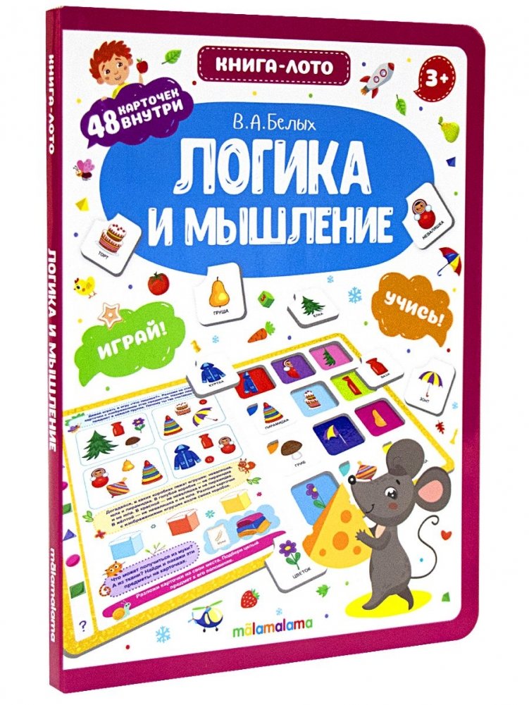 Книга-лото «Логика и мышление» — это обучающее пособие для малышей, составленное по методике педагога-психолога В.Белых. Книга в увлекательной форме поможет ребенку освоить первые знания перед школой, раскрыть свой интеллектуальный потенциал. На 8 красочных страницах ребенок найдет 48 карточек, которые помогут ему выполнить множество интересных развивающих заданий. Карточки имеют удобное отверстие для детских пальчиков, чтобы малышу было удобно самостоятельно доставать их из окошек. Пособие выполнено из плотного картона с ламинированной обложкой. Имеет удобный формат.