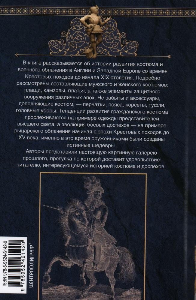 Авторы рассматривают историю развития костюма и военного облачения в Англии и Западной Европе со времен Крестовых походов до начала XIX столетия. Вы получите представление как о доспехах, в которые были облачены воины в битве при Гастингсе в 1066 году, так и о пышных английских нарядах эпохи Регентства. Тенденции развития гражданского костюма прослеживаются на примере одежды представителей высшего света, а эволюция боевых доспехов на примере рыцарского облачения. Авторы создали настоящую картинную галерею прошлого, прогулка по которой доставит удовольствие читателю, интересующемуся историей костюма и доспехов.