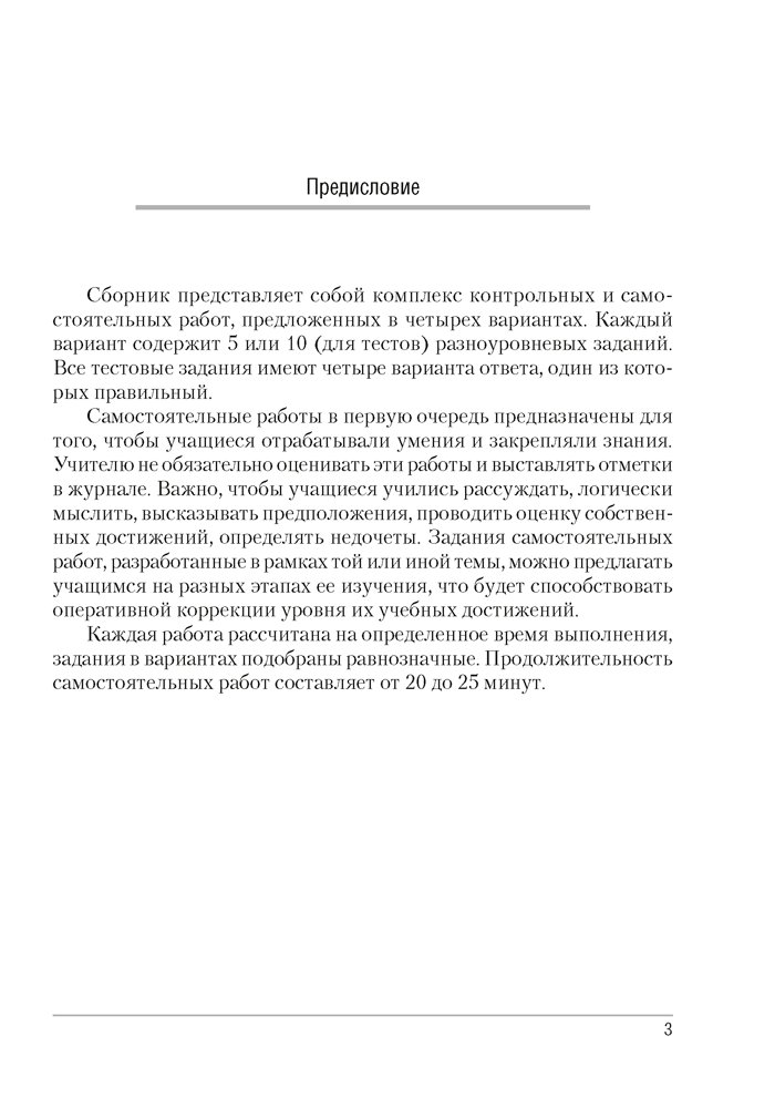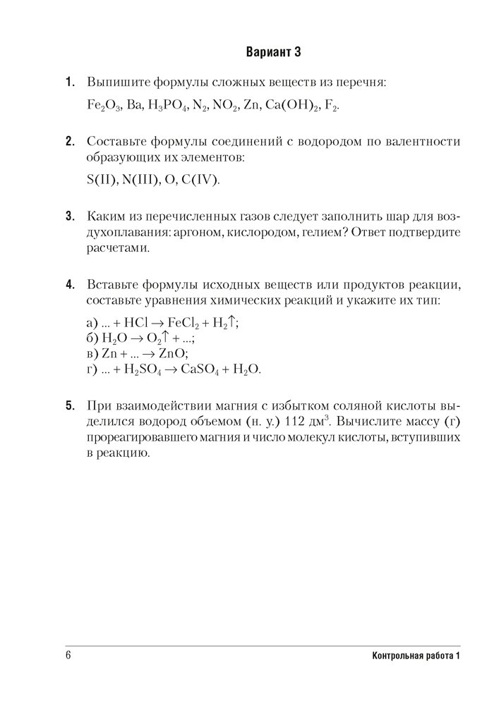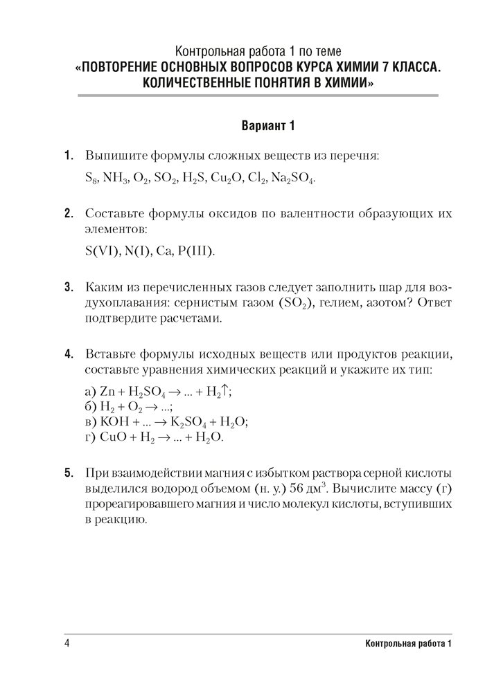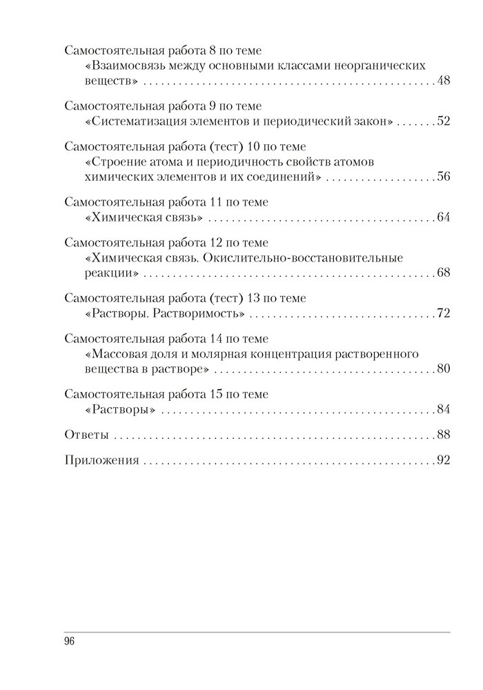 Сборник содержит контрольные и самостоятельные работы по химии для 8 класса, представленные в четырех вариантах. Все варианты включают разноуровневые задания, которые разработаны согласно нормам оценки результатов учебной деятельности учащихся.