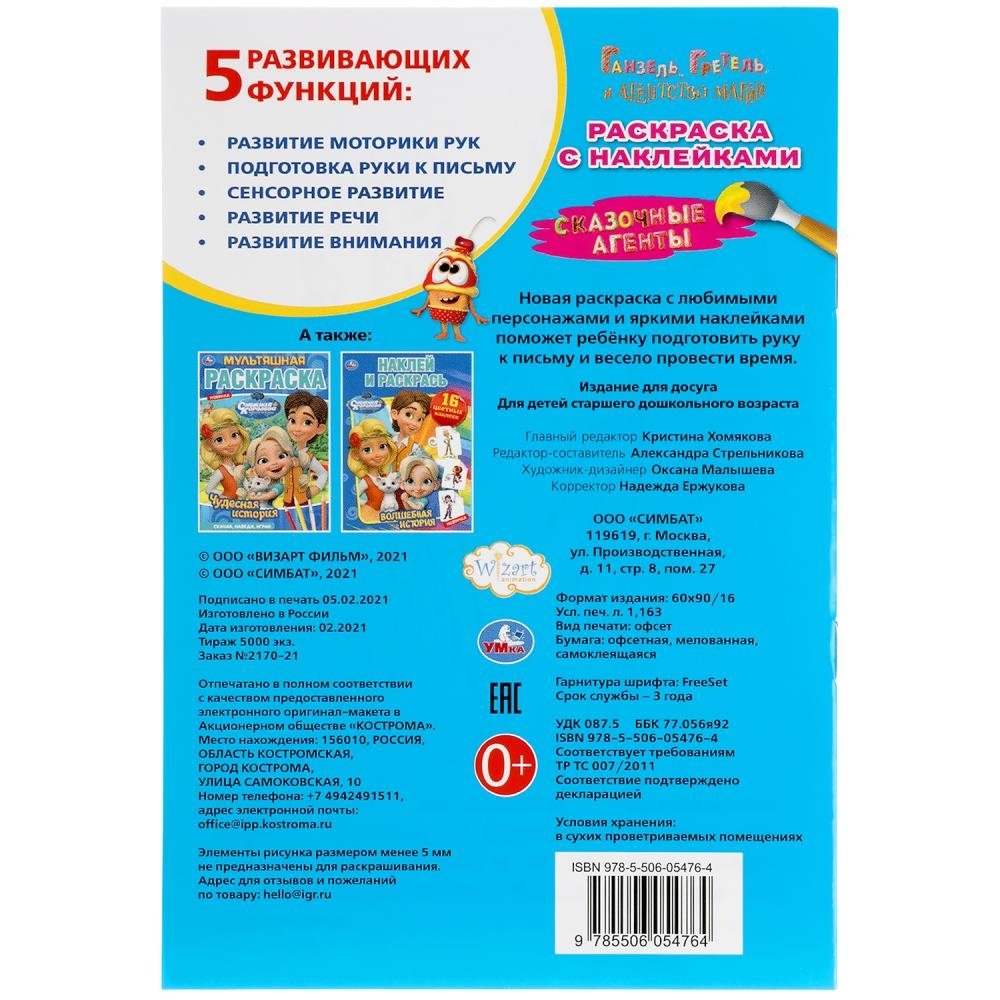 Сказочные агенты. Наклей и раскрась малый формат. Ганзель, Гретель и агентство магии