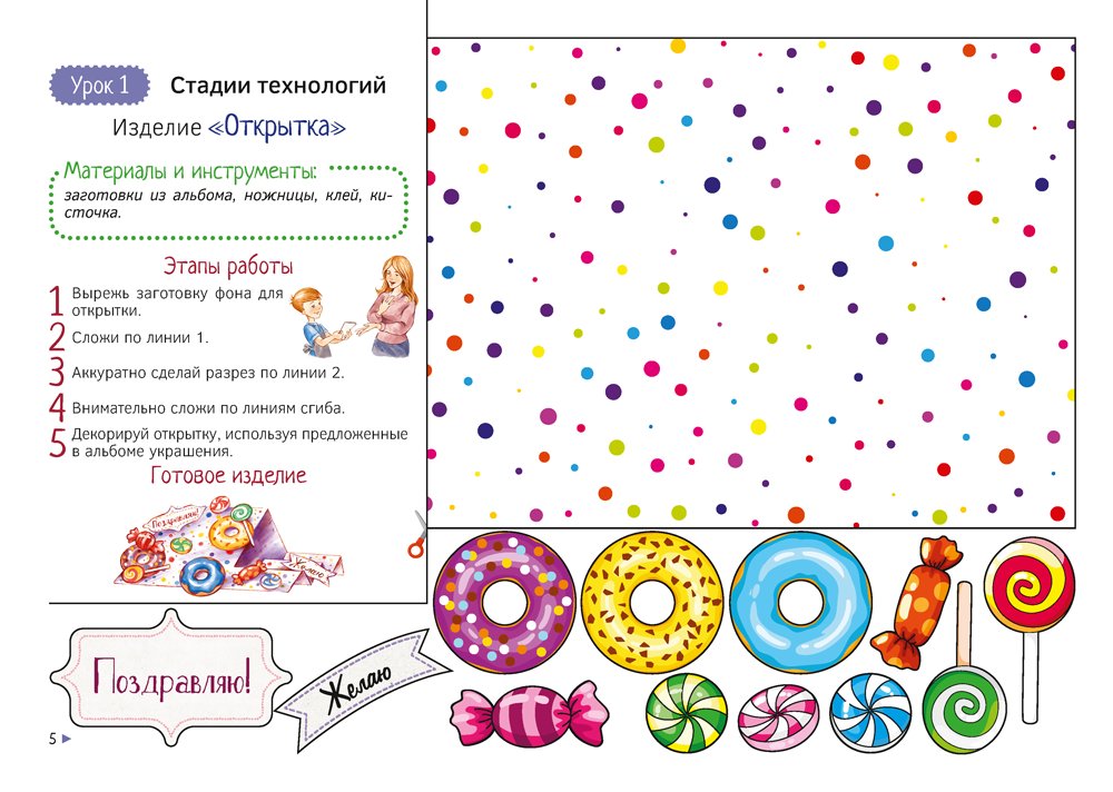 Альбом соответствует учебной программе и предназначен для проведения занятий по трудовому обучению в 3 классе. К каждому уроку предлагается список необходимых материалов и инструментов, схемы изготовления изделий, цветные заготовки, образцы поделок, а также система самооценки. Выполняя задания, третьеклассники будут с лёгкостью и интересом творить своими руками.