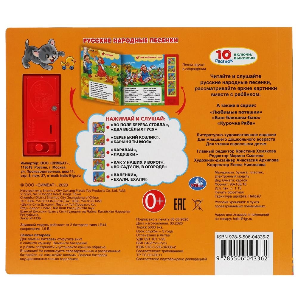 Русские народные песни. 5 кнопок, 10 песен